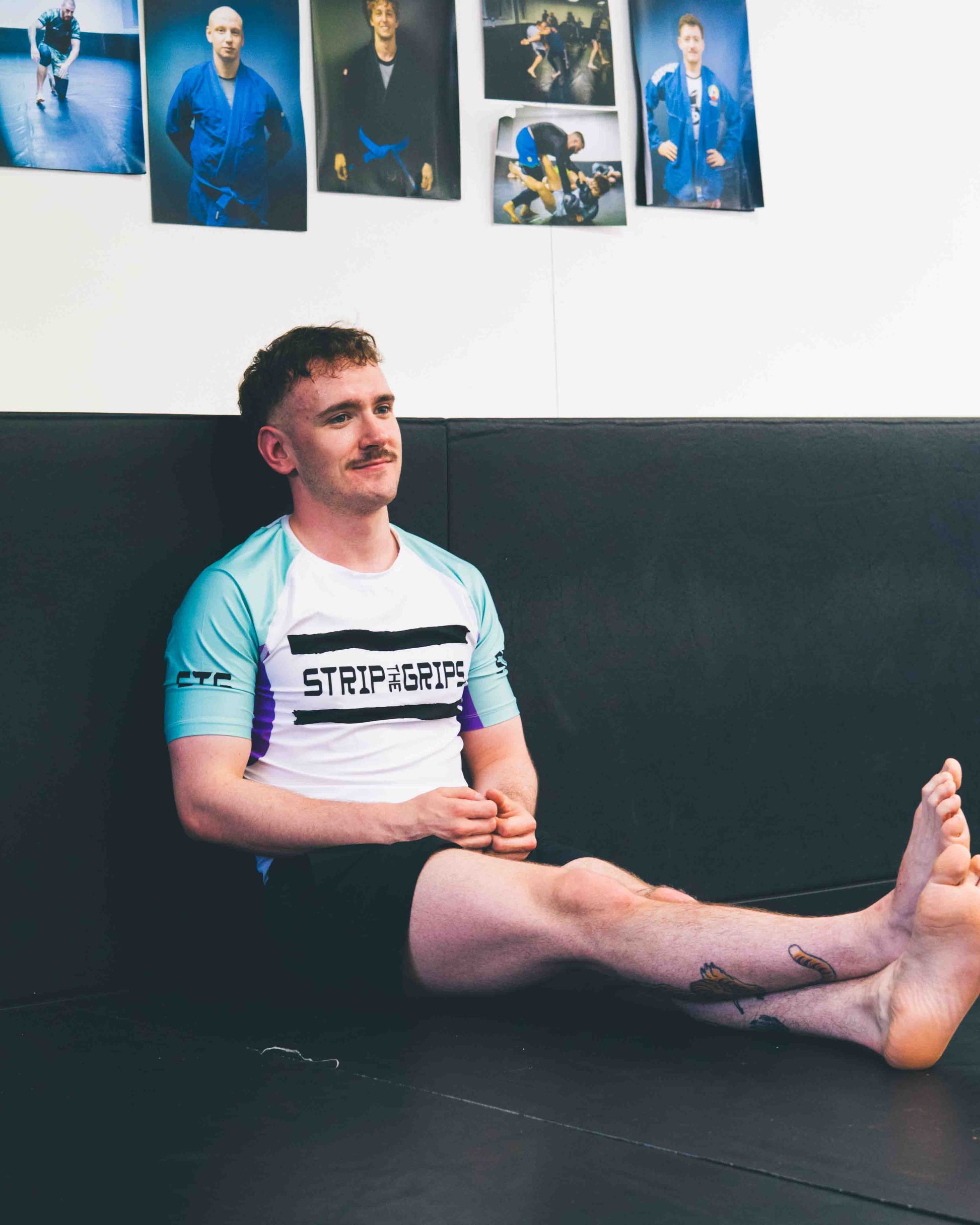 Our first rashguard. Coming in white with the original Strip the Grips logo across the back.